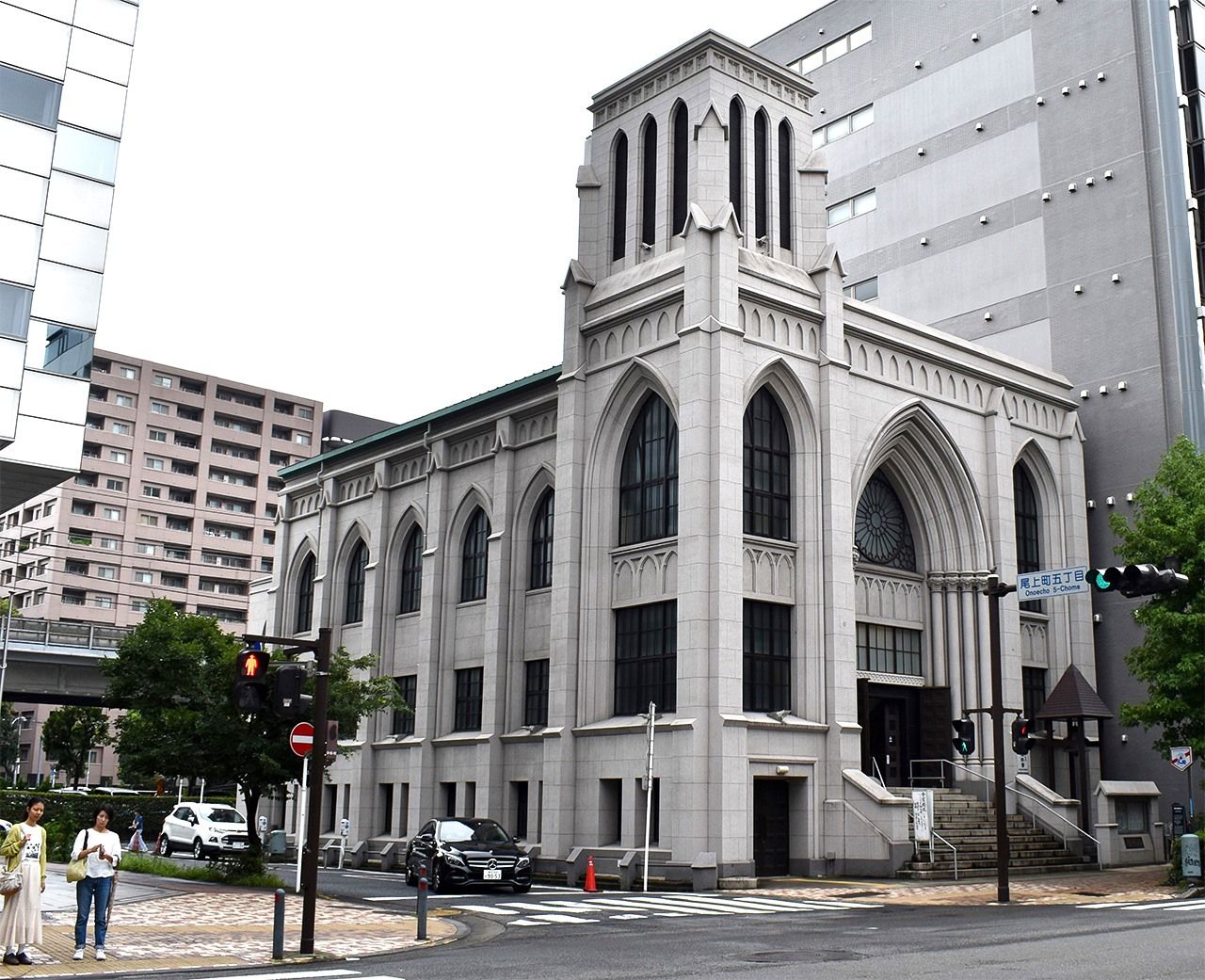 ヘボンの尽力で建てられた横浜指路教会の現在の姿(2023年9月9日、横浜市中区尾上町)=評者撮影
