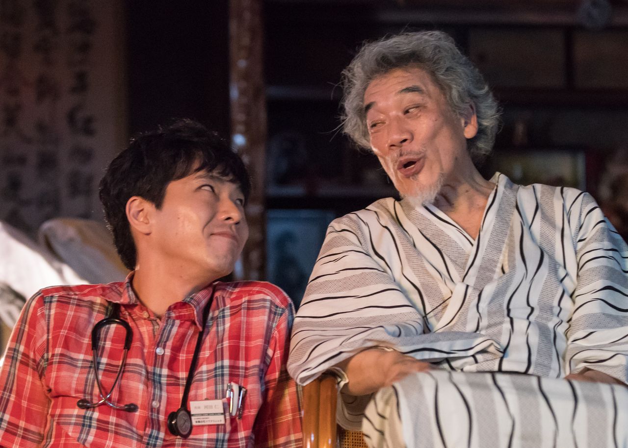 在宅医・河田(柄本佑)に軽口を叩き、迫りくる死に明るく向き合う本多(宇崎竜童) ©「痛くない死に方」製作委員会
