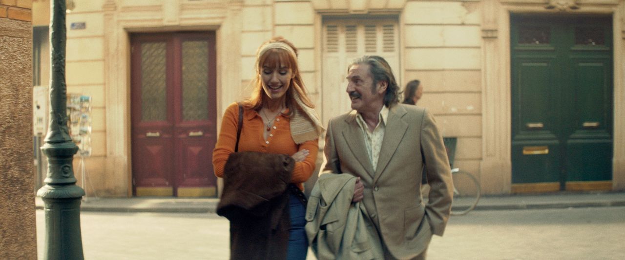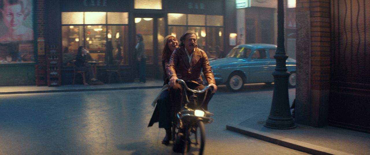 70年代の街並みを再現したセットで「運命の女性」(ドリア・ティリエ)との再会を楽しむヴィクトル ©2019 - LES FILMS DU KIOSQUE - PATHÉ FILMS - ORANGE STUDIO - FRANCE 2 CINÉMA - HUGAR PROD – FILS – UMEDIA