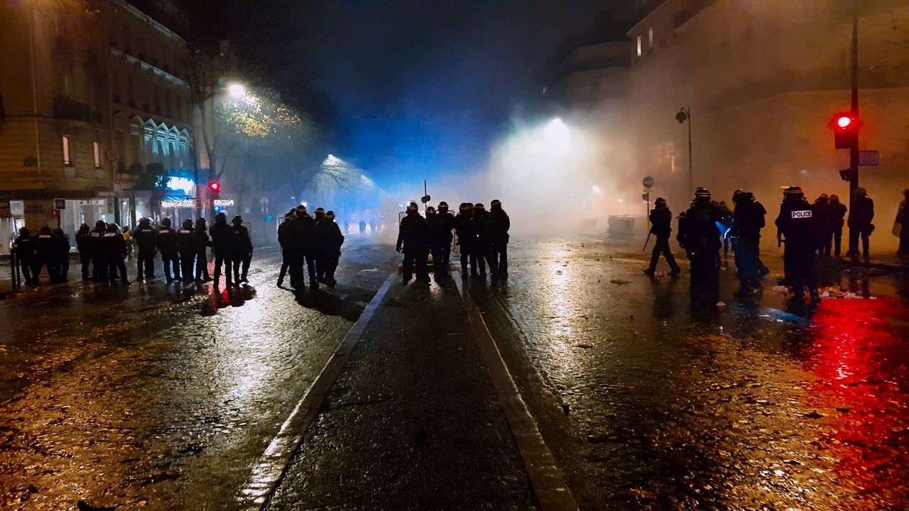 パリ・シャンゼリゼ大通りの凱旋門でもデモ隊と警官隊が激しい衝突を繰り広げた © Le Bureau - Jour2Fête – 2020
