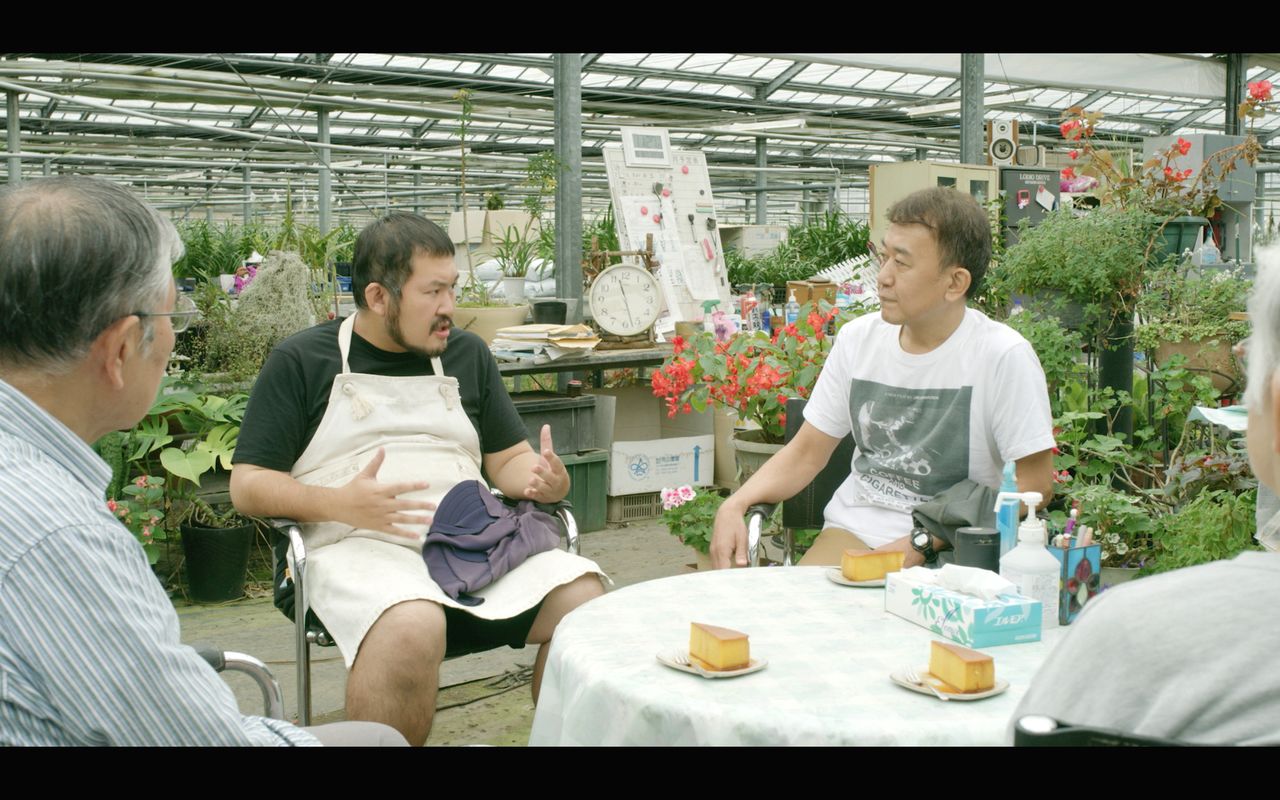 地元のラン園で東京国際映画祭の前プログラミング・ディレクター、矢田部吉彦さん(本人)を相手に熱弁をふるう渡辺。手前は実の両親 ©cinemadrifters