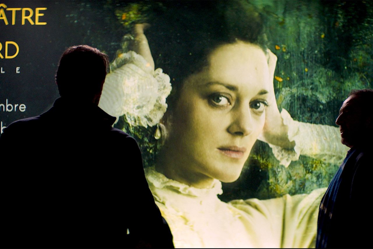 姉アリス(マリオン・コティヤール)は舞台で主役を演じる女優。空港の通路に掲示された広告パネルに動揺する弟のルイ(左、メルヴィル・プポー)© 2022 Why Not Productions - Arte France Cinéma