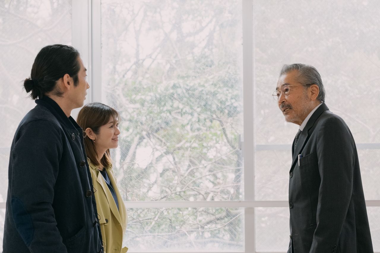 卓(森山未來)は久々に父・陽二(藤竜也)に再会する。卓の隣には妻・夕希(真木よう子) ©2023 クレイテプス