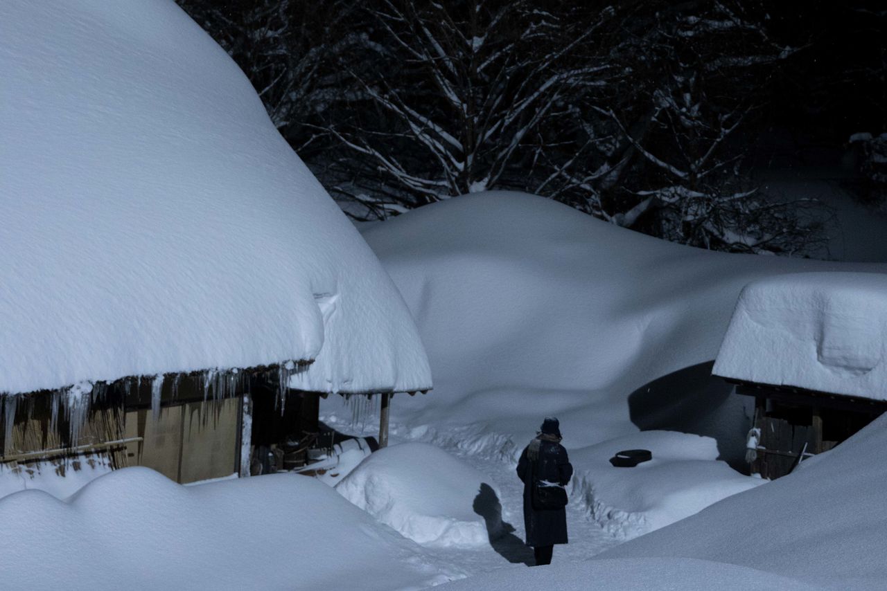 李は雪深い山奥でべん造(堤真一)が細々と営むおんぼろ宿にたどり着く © 2025『旅と日々』製作委員会