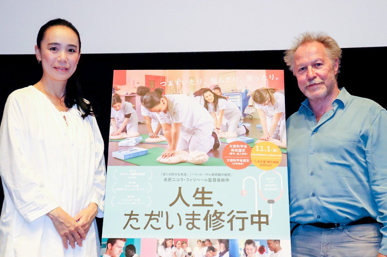 日本での公開(11月1日~)に先駆け、フィリベール監督が10月上旬、11年ぶりに来日し、河瀬直美監督を招いてのトークイベントに登場した。2人の縁は、1997年のカンヌ国際映画祭が始まり。審査員の1人がフィリベール監督で、河瀬監督の『萌の朱雀』を強く推し、同作品がカメラ・ドール(新人監督賞)を獲るに至った。2人が顔を合わせるのは、2007年のカンヌ以来だという。