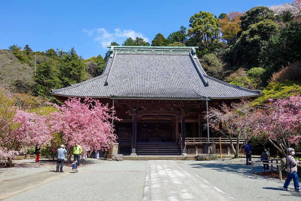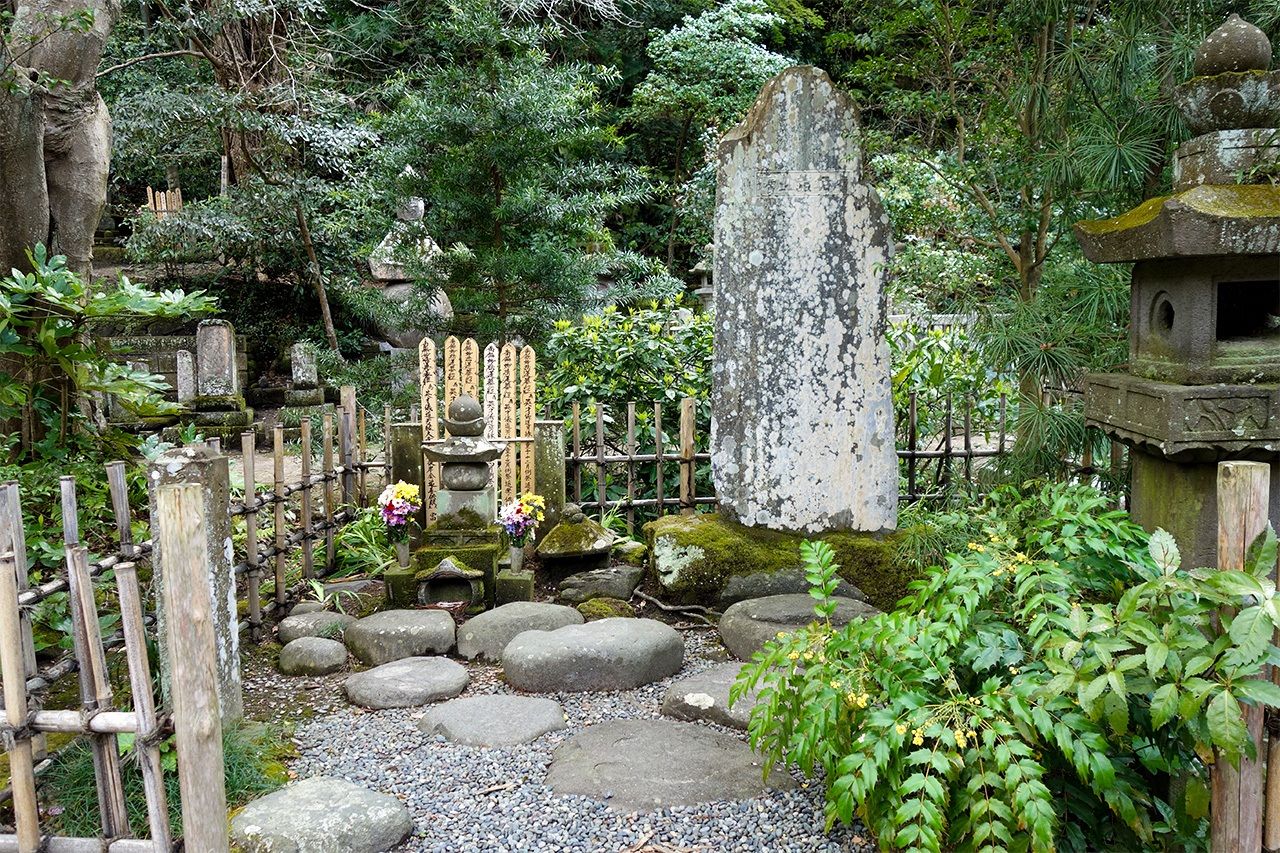 寺の総門をくぐり、木陰の参道を抜け石段を上る。視界がぱっと開け、壮大な祖師堂が目に飛び込んで来る。鎌倉でも屈指の名刹だ。比企一族の墓は向かって右側にある。寺は丘陵の谷間に位置することから、周辺は「比企谷(ひきがやつ)」とも呼ばれている。