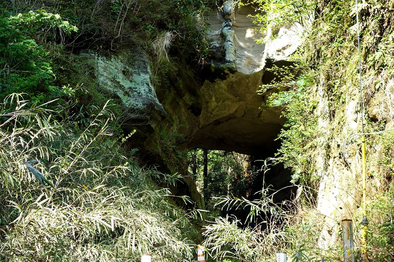 釈迦堂切通し。崩落の恐れがあり、現在は立ち入り禁止(筆者撮影)