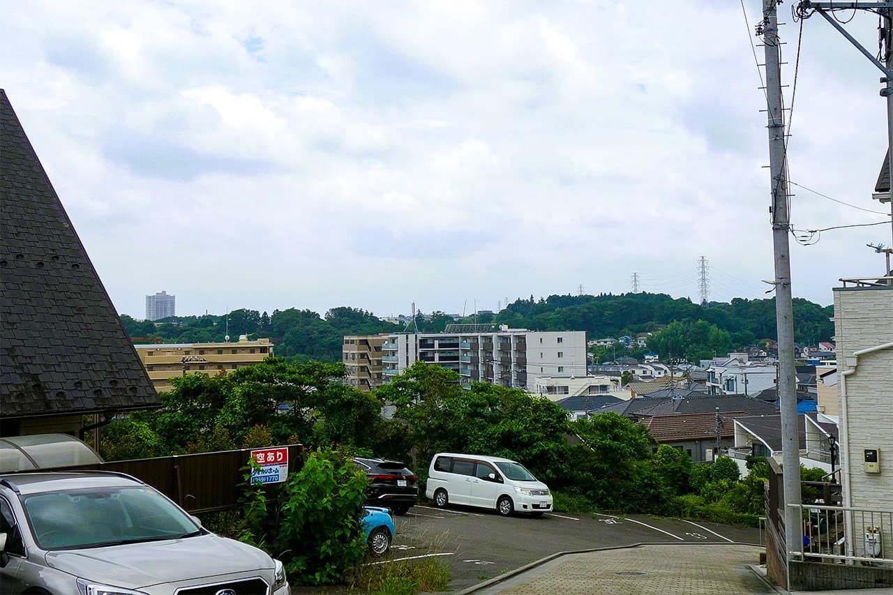 住宅地の奥に見える丘に当時、数万騎もの幕府軍が待機していたとみられる(横浜市旭区鶴ヶ峰)=筆者撮影