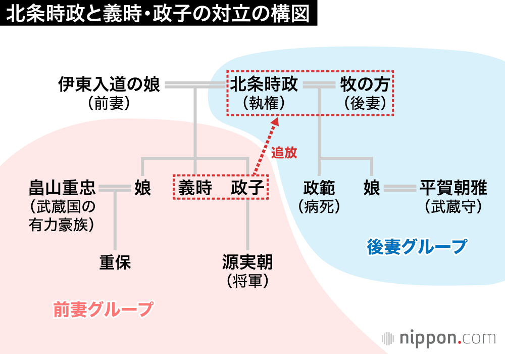 義時や政子らとの対立が表面化する中、時政は牧の方の入れ知恵もあり、失地回復に向け将軍・源実朝の首をすげ替えて平賀朝雅を擁立しようと試みた。このクーデター計画(牧氏の変)を察知した義時と政子は猛反発。特に政子からすれば実子の実朝を退けさせるわけにいかない。さらに「実朝がいなくなったら頼朝の血を引く男子がいなくなってしまうので、『最後の砦』は守らないといけない」(山本氏)というバネが働いた。