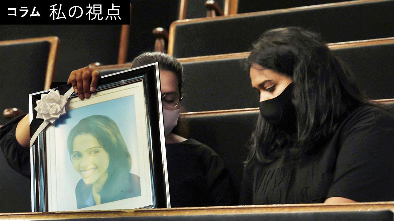 バナー写真:スリランカ人女性ウィシュマ・サンダマリさんの遺影を手に、改正入管難民法の成立を見届ける妹ポールニマさん(左)とワヨミさん=2023年6月9日、国会内(時事)