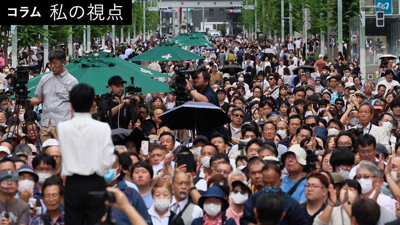 バナー写真:東京都知事選で候補者の演説を聞く有権者ら=2024年6月30日、東京都中央区(時事)