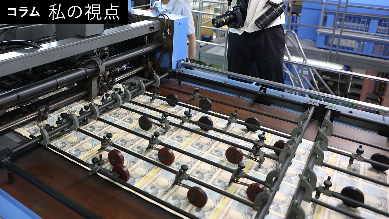 バナー写真:報道陣に公開された新紙幣の表刷印刷工程=2024年6月、東京都北区(時事)