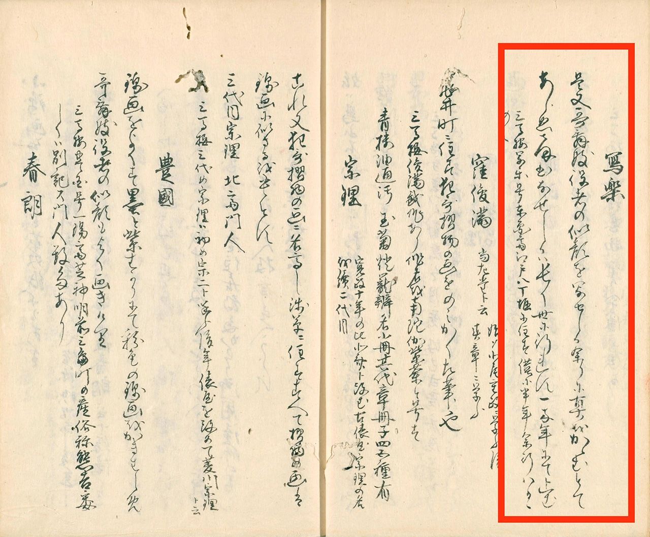 『浮世絵類考』に赤字で追記した「写楽は阿州候の士にて斎藤十郎兵衛といふよし栄松斎長喜老人の話なり」の箇所。国立公文書館所蔵