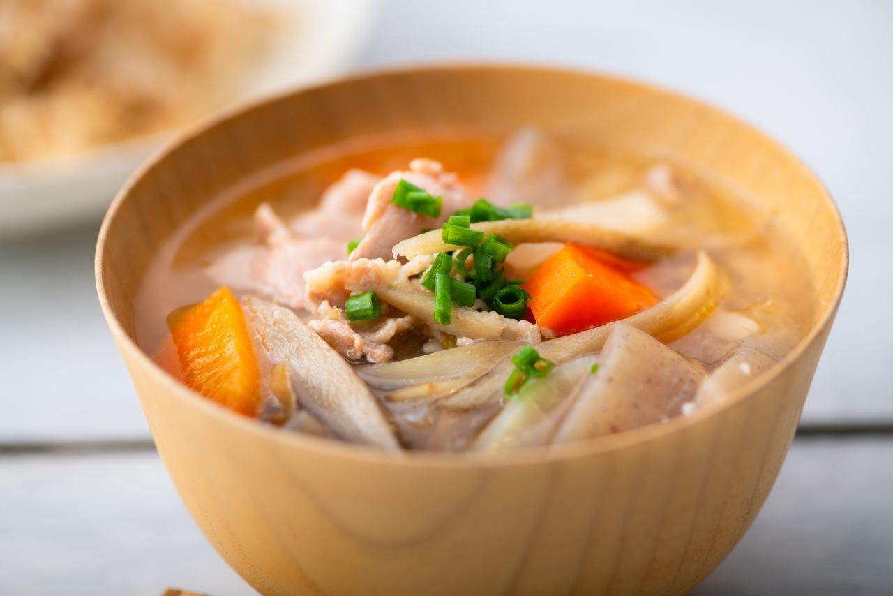 ささがきにしたゴボウを入れた具だくさんの豚汁は、冬のごちそう!