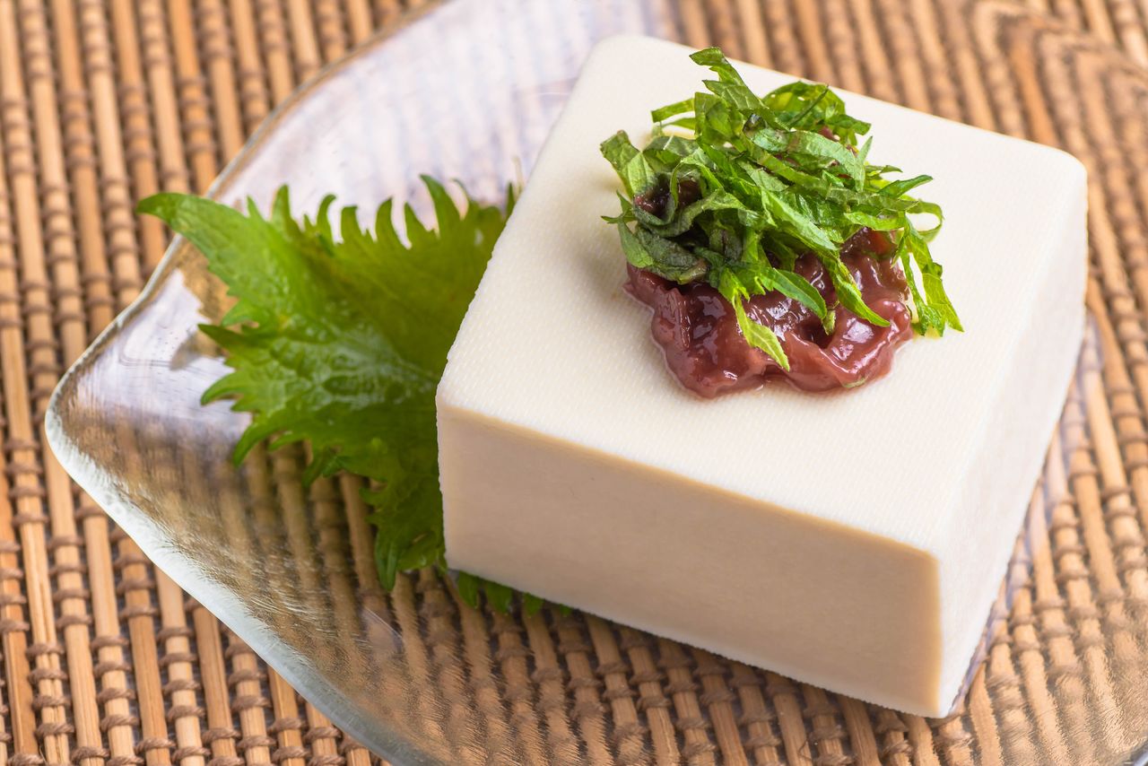 梅干しは豆腐など淡白な食材と相性がよい。薬味に梅肉を添えた、冷ややっこの変化球。