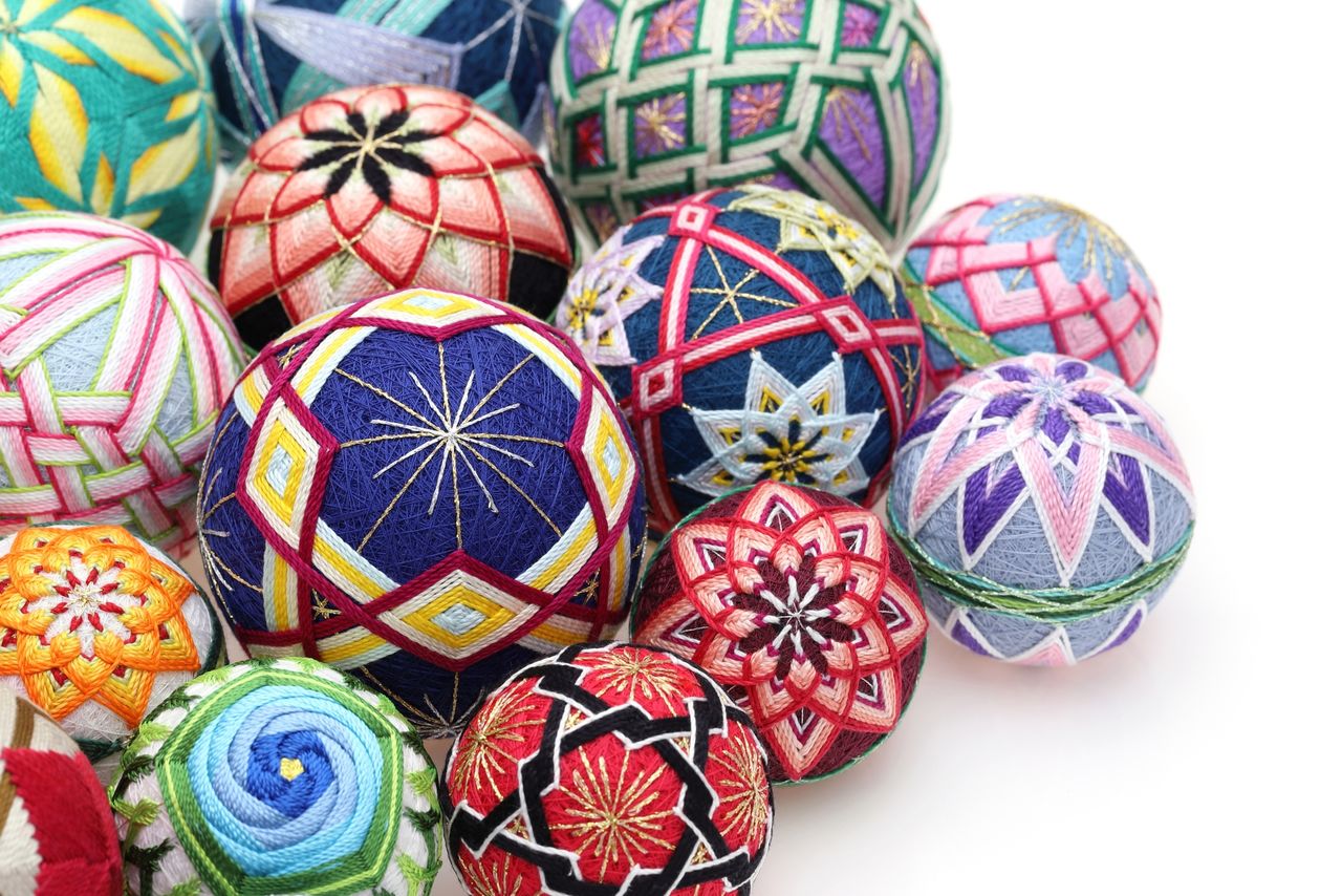 手まりは中国からもたらされ、平安朝の時代は公家の遊びに、江戸に入ると「うまく転がる」「万事丸くおさまる」の意味をかけて、子どもの成長を願う祝い事や、厄除けの贈り物にすることもあった。