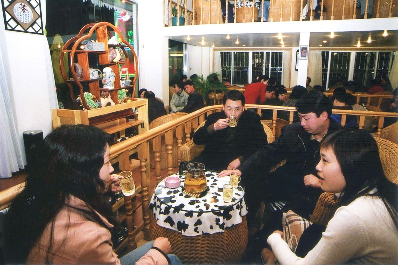北京では90年代から茶館が増え出した。北京人は茉莉花茶(ジャスミン茶)を持ち歩いて飲んでいるが、ウーロン茶を台湾式茶芸で提供する茶館も現れた。94年に東城区で開店した「五福茶芸館」が皮切りだったといわれる。