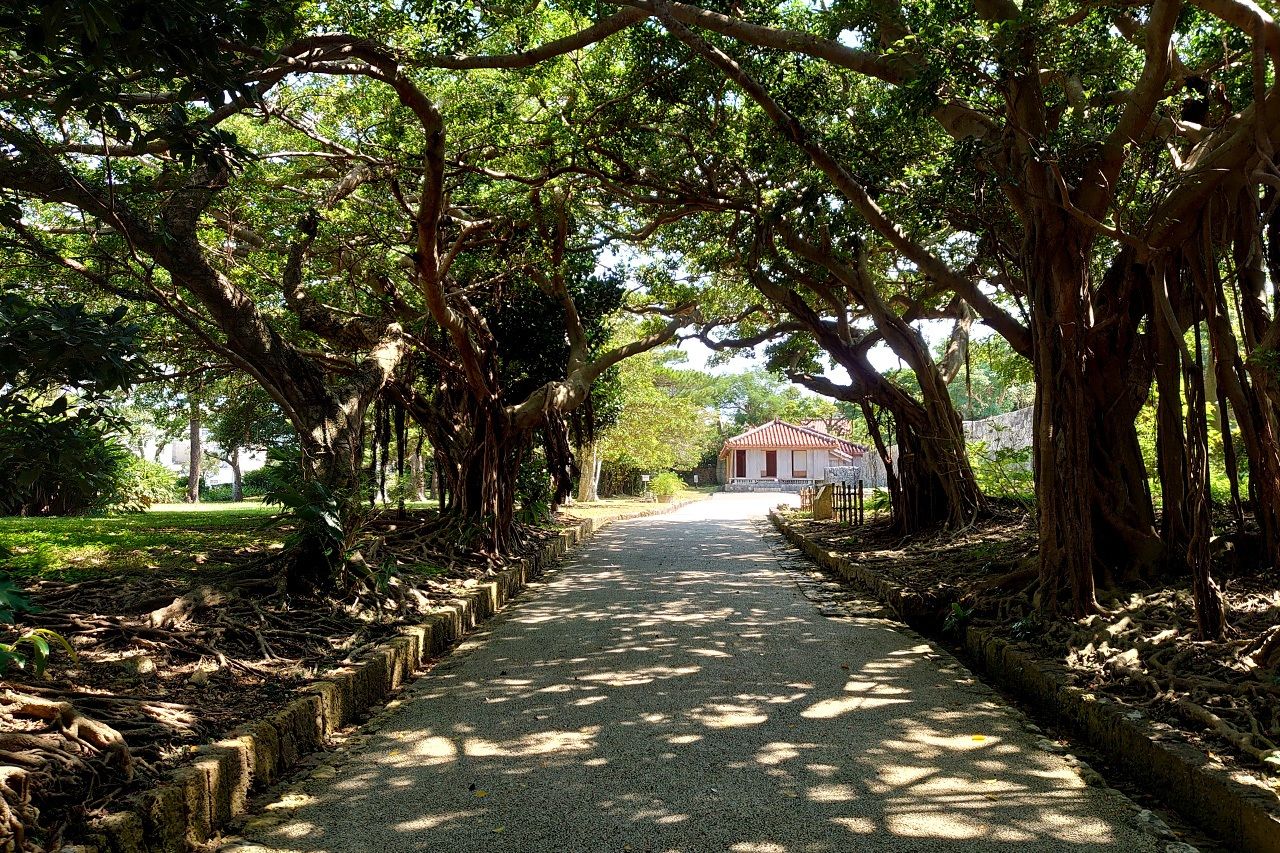 琉球王国の歴代の王が眠る「玉陵」の敷地内に植わっているガジュマル(筆者撮影)