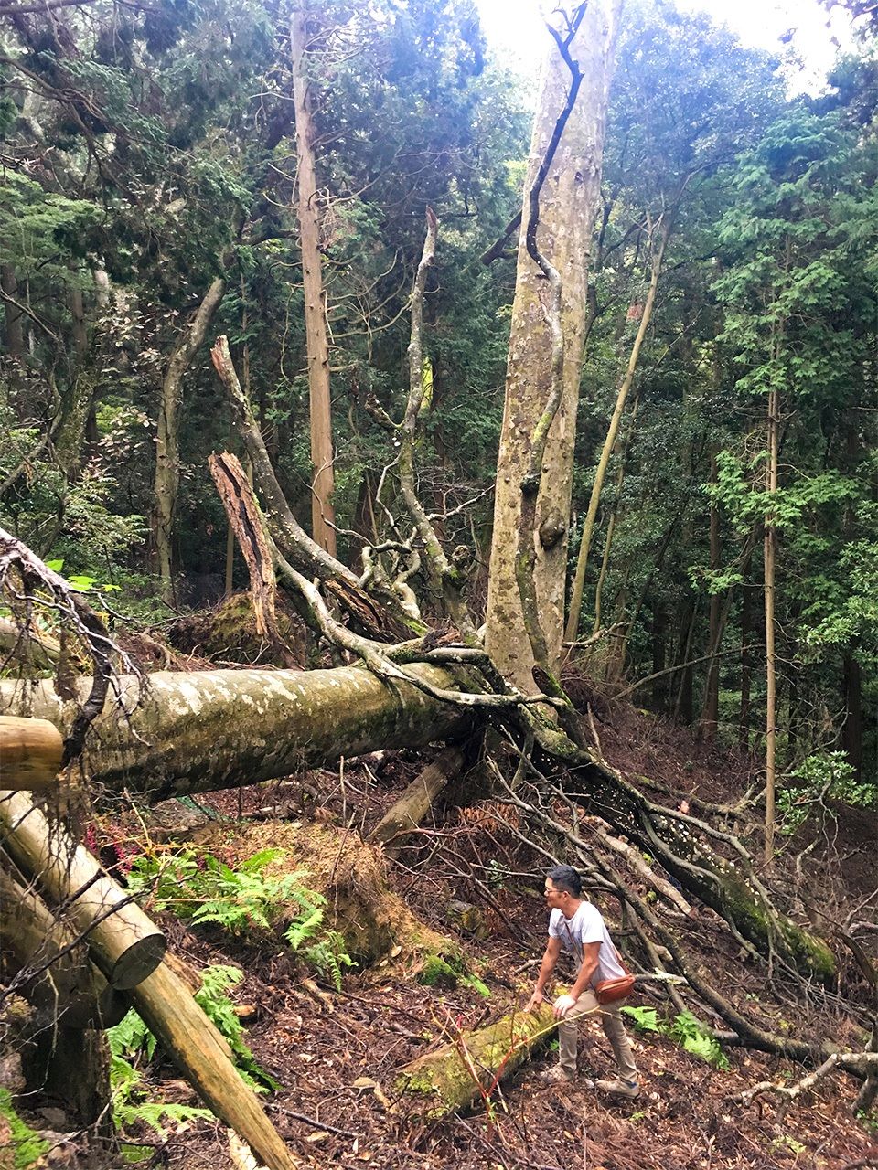 制作に用いる素材は一貫している。海辺で拾った流木をはじめ、ビーチサンダル、漁網、ボトル、今は廃虚となった製糖工場で日本統治期以来サトウキビを搾るのに使われていた麻布など、大自然から与えられた物か、あるいは大量生産されて後に廃棄された物たちだ。