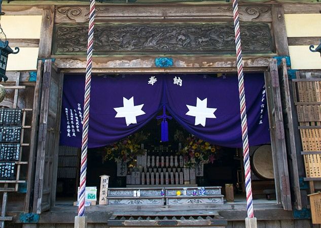能勢妙見山の境内を歩いているとき、あちこちで十字型のマークを目にした。筆者はキリスト教の十字架を連想したが、鎌倉時代からこの地を治めていた能勢氏の家紋で、今は北極星のシンボルになっていると教えられた。日蓮宗の寺でなぜ北極星が信仰されているのかというと、平安時代以来、北極星を神格化した「妙見大菩薩」が祭られてきた事に由来している。