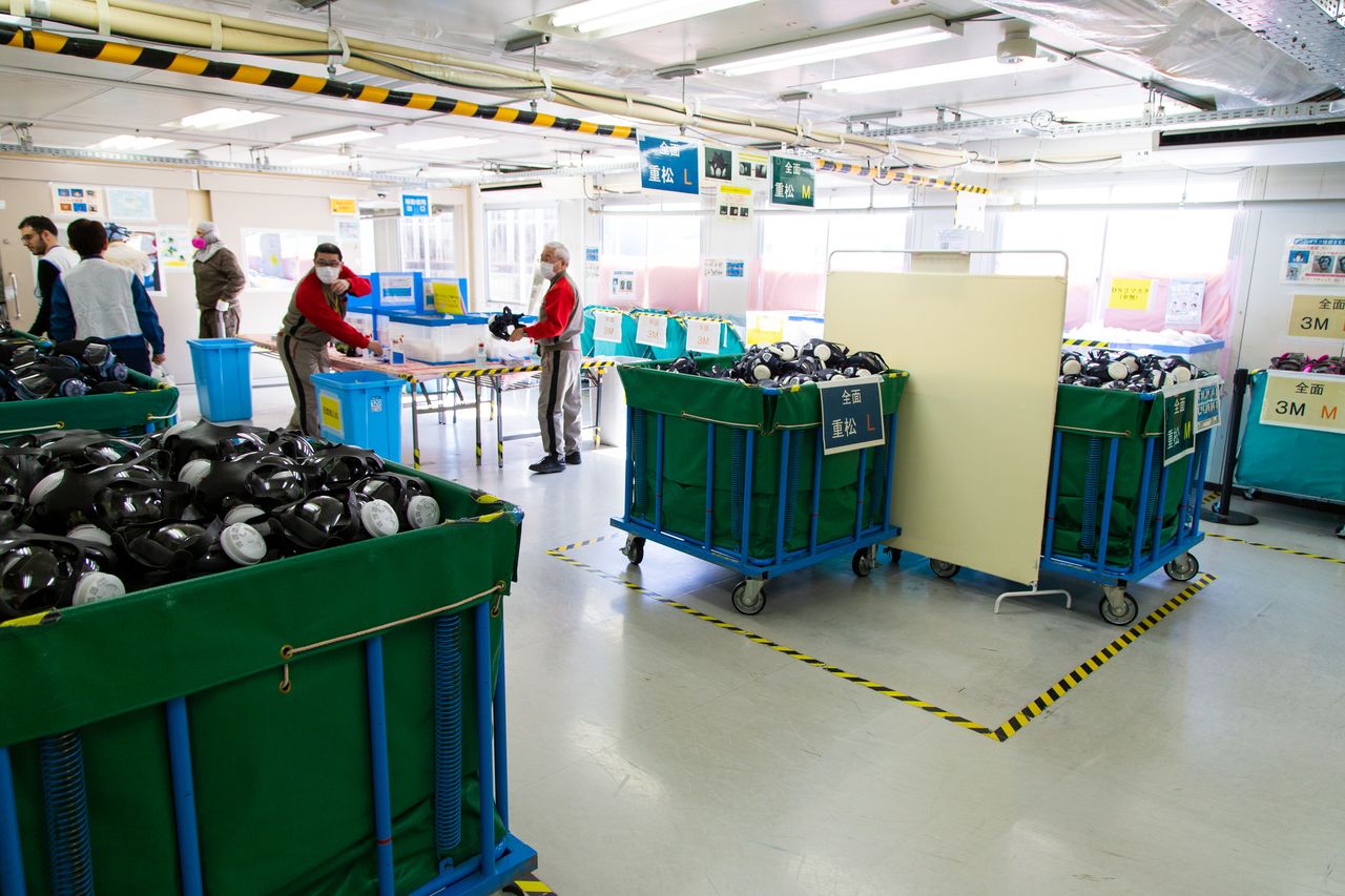 「中で働いている人はスマホ持っていてもいいんですか?」と、東京電力の担当者に聞くと、「はい、私も持っていますよ」とポケットから取り出して見せてくれた。スマホ禁止は構内のセキュリティに関する情報が外部に漏洩しないよう、撮影を禁止するためのもの。つまり、カメラの持ち込み禁止ということになる。中で働く人は、持ち込む機種を事前に登録し、カメラ機能が使えないように、レンズをシールで封印した上で、持ち込みが許可されているという。休み時間、お気に入りの動画を見て気分を紛らしたり、もしかしたら家族や友だちとLINEでやり取りしたりしているのかもしれない。