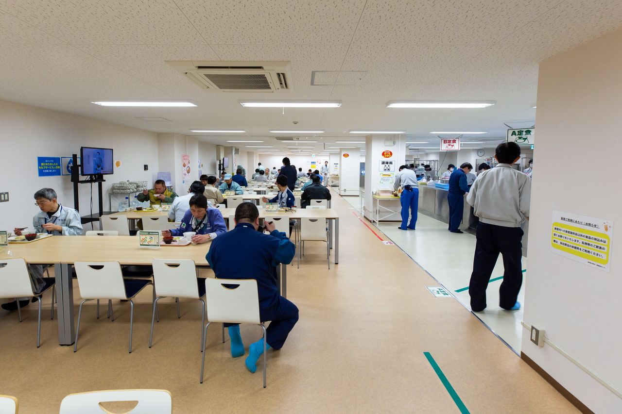 どこにでもありそうな食堂の風景。都会のオフィスと違って、女性の姿がない