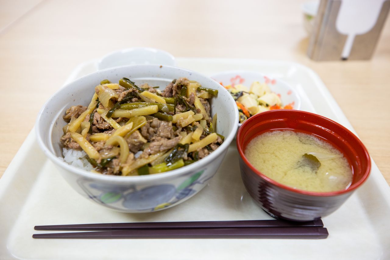 食堂のメニューは、定食、丼もの、カレー、麺類の4種類で全て390円。都会のオフィスの社員食堂と違うのは、どのメニューも800~900カロリーと熱量高めだ。私が食べたラーメンには小籠包とライスもセットになっていた。外での現場仕事の人が多いため、「低カロリー健康志向」「炭水化物ダイエット」メニューへのニーズはほとんどないそうだ。