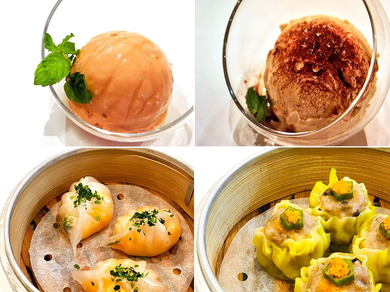「火炎」の各種シューマイとアイスは全て鄧日成さんが手作りしたもの。日本人により身近に香港の飲食文化を伝えられたらと願っている(筆者撮影)