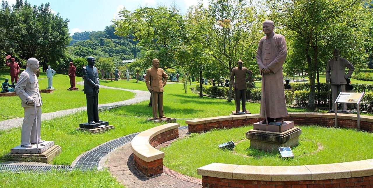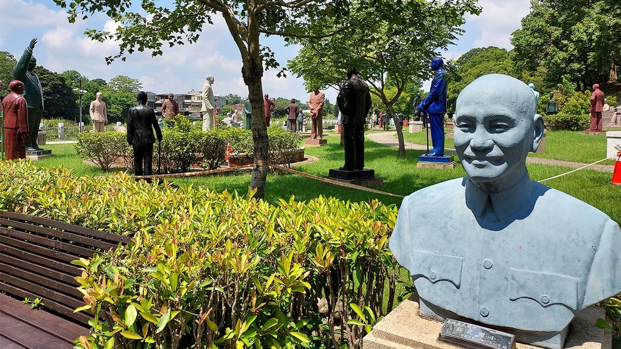 バナー写真=桃園慈湖公園に集まった蒋介石像