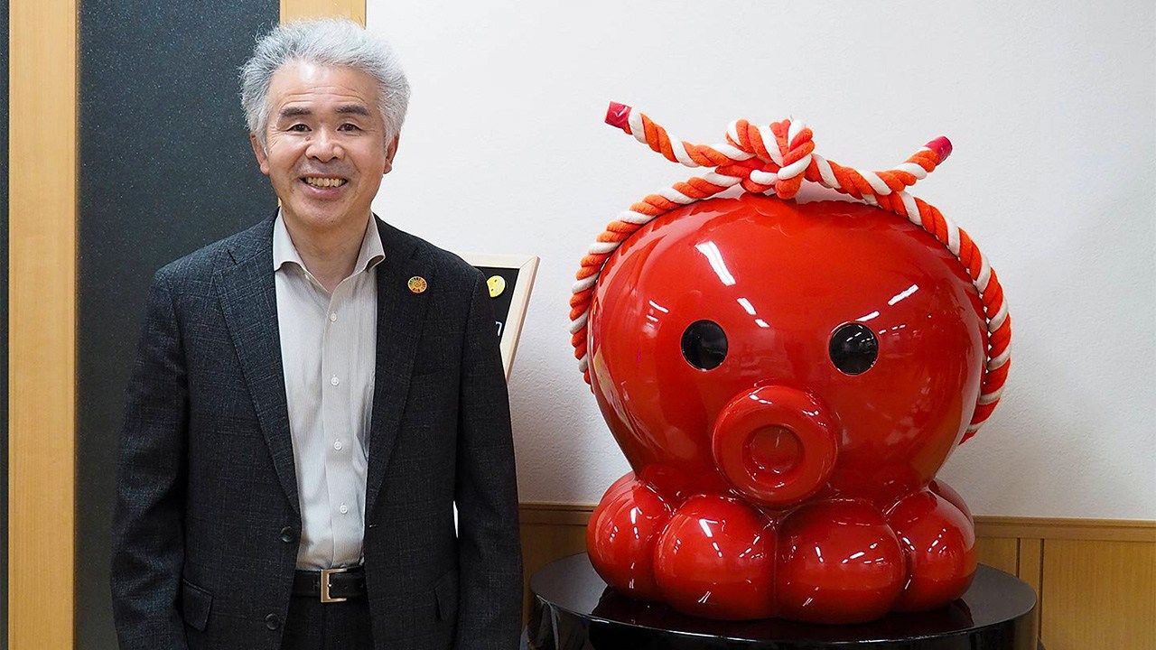 「まさか、神社に祭られるまでになってしまうとはね」と、入谷出身で一般社団法人「南三陸研修センター」代表理事を務める阿部忠義さん(63)は苦笑する。タコの名は「オクトパス君」。南三陸町を代表するキャラクターであり、町内の至る所で姿を目にする。その生みの親が阿部さんだ。