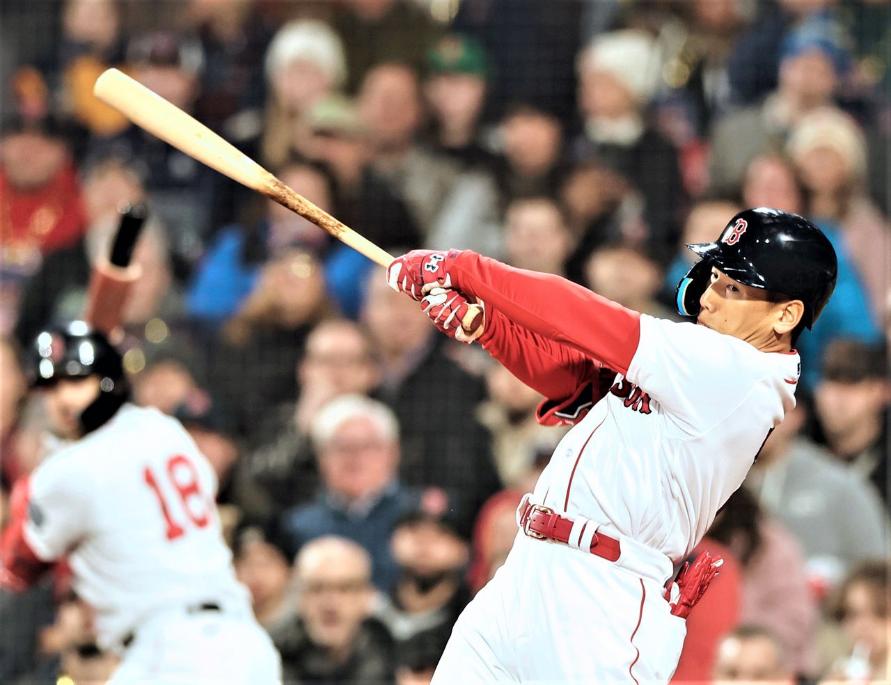 確実性とパワーを兼ね備えたルーキーは、本塁打でもボストンを沸かせた。しかも、4月3日に放ったメジャー初本塁打は、レッドソックスの本拠地・フェンウェイパークの左翼にそびえる高さ約11mの特大フェンス「グリーンモンスター」を越える、逆方向へのアーチ。身長173cmと小柄な新主砲のパワーに、地元ファンは度肝を抜かれた。