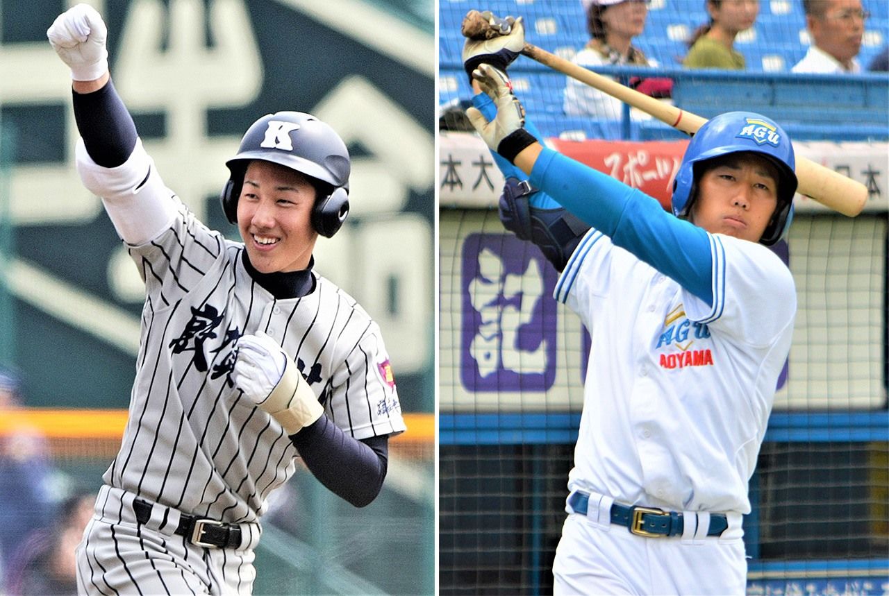 左/福井・敦賀気比高校時代の吉田は1年生から4番を務め、春夏合わせ2度甲子園の土を踏んだ(2010年3月28日、兵庫県・甲子園球場) 右/青山学院大学進学後も1年春季リーグからクリーンナップとして活躍した(2015年10月5日、東京都・神宮球場) 時事