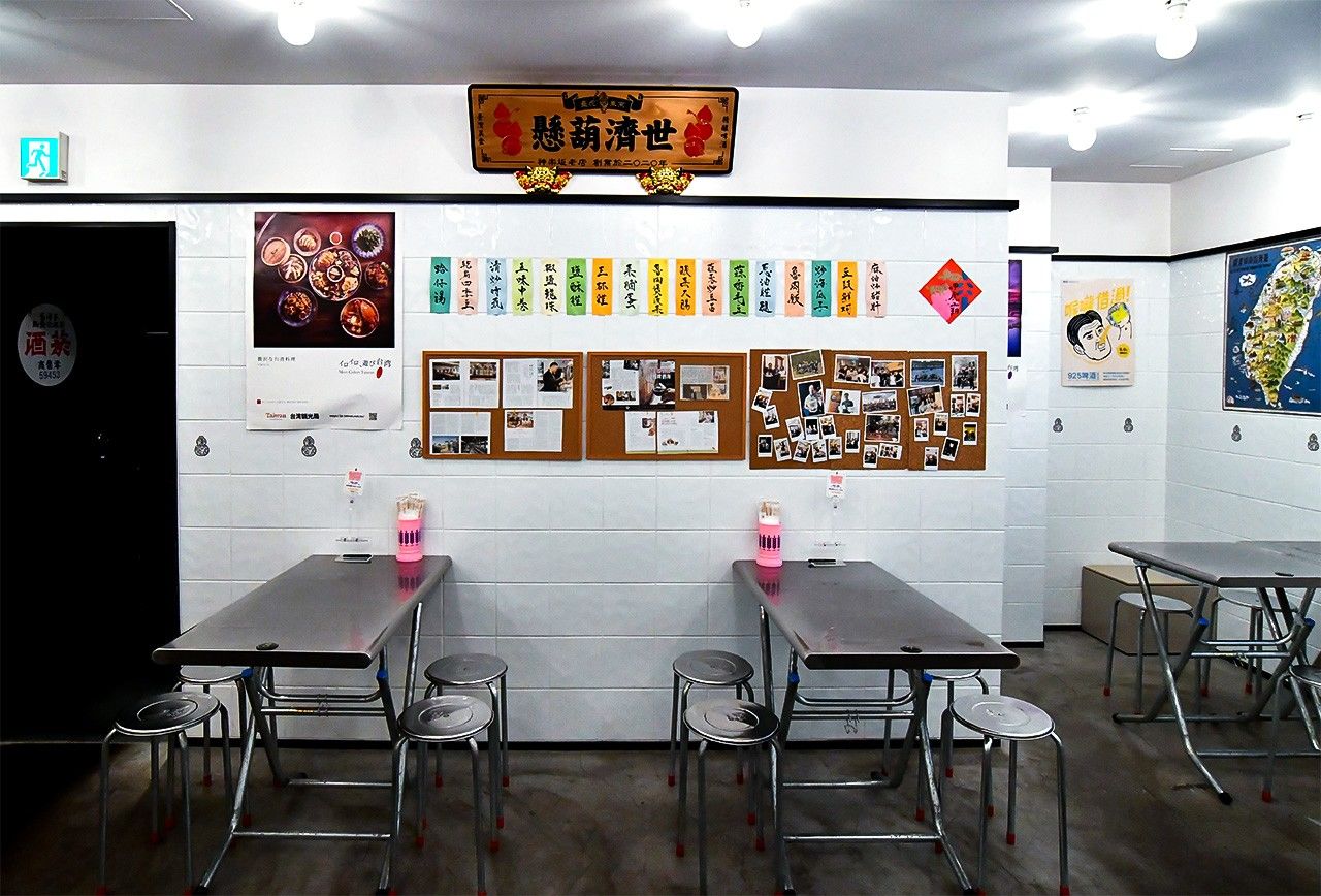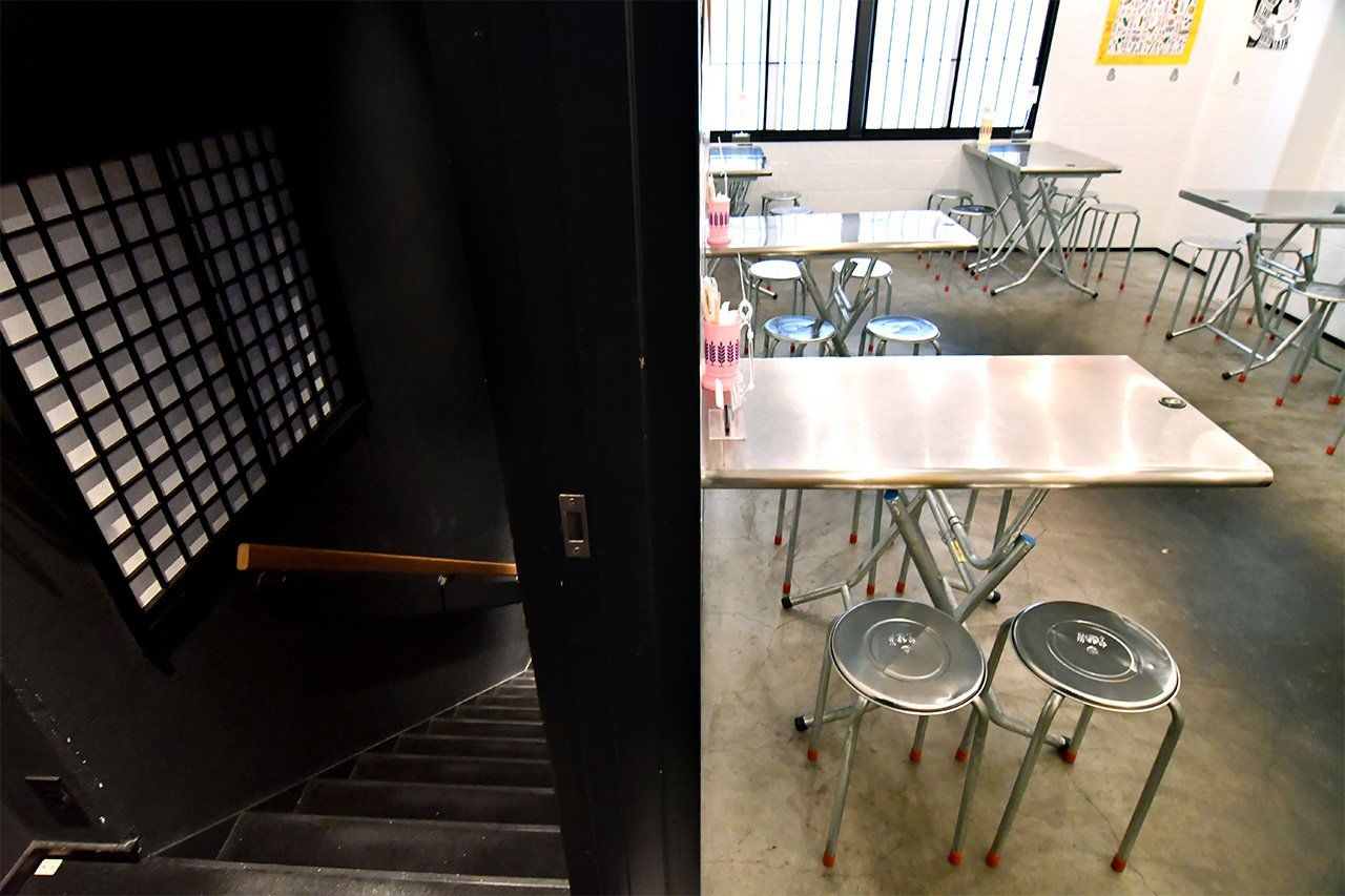 店内にある階段を上っていくと、2階は一転して、明るい白いタイル貼りの空間。台湾人にはなじみのあるあの光景だ。ステンレス製のテーブルや椅子が並び、壁にはメニュー表などが貼られていて、台湾に戻ったような錯覚に陥る。
