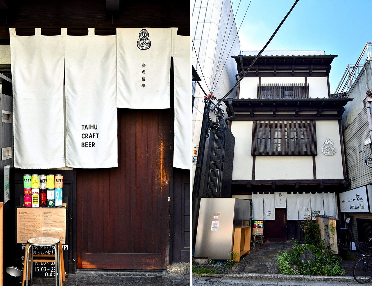 神楽坂の坂道をゆっくりと上っていく。神楽坂のシンボルともいえる毘沙門天(善国寺)の手前の路地を右に入っていくと古民家風の2階建ての建物が見えてくる。入り口にかかる白いのれんは上品ですっきりしており、由緒ある和食の店のようだ。しかし足元の手書きの看板には「台湾クラフトビールと超本場台湾料理」の文字。ここは台湾クラフトビールブランド・タイフーブルーイング直営の「タイフートーキョー」である。