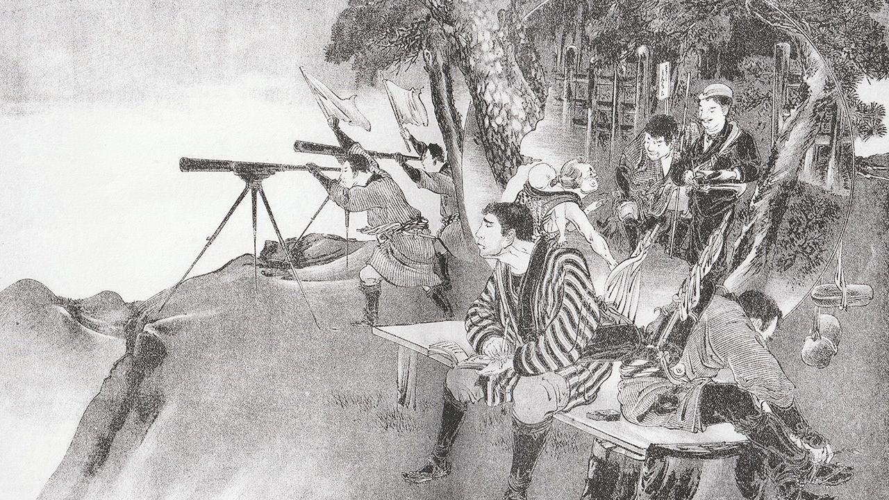 生き馬の目を抜く相場の世界。同業者より早く情報を入手できるかが成否を左右する。堂島の相場は当初、「米飛脚」と呼ばれる専門の韋駄天(いだてん)が各地の商人に知らせていたが、なにせ人の足。京都や奈良に情報が届くまでは何時間もかかった。もっと早い手はないかと思案して行き着いたのが、1600年代の初頭に日本へともたらされた「遠眼鏡(望遠鏡)」を使う「目視」だ。