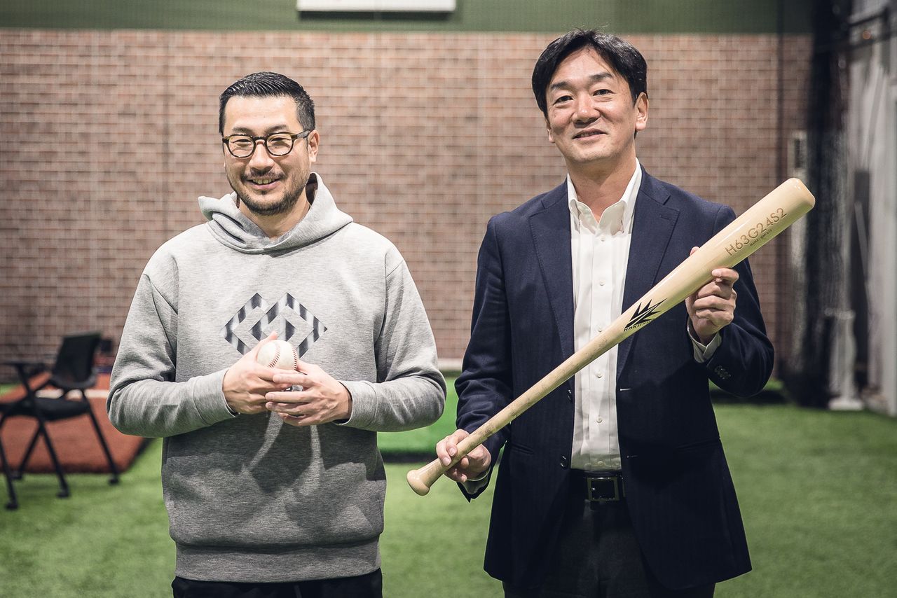 右:NTTに勤務の後、IT系ベンチャーを設立。2014年にネクストベースを創業した中尾信一社長。立教大学時代は野球部に所属した 左:元国立スポーツ科学センター研究員で、北京五輪で女子ソフトボール日本代表をサポートし金メダルに貢献するなど、多くの実績を持つ神事努上級主席研究員(撮影:松園多聞)