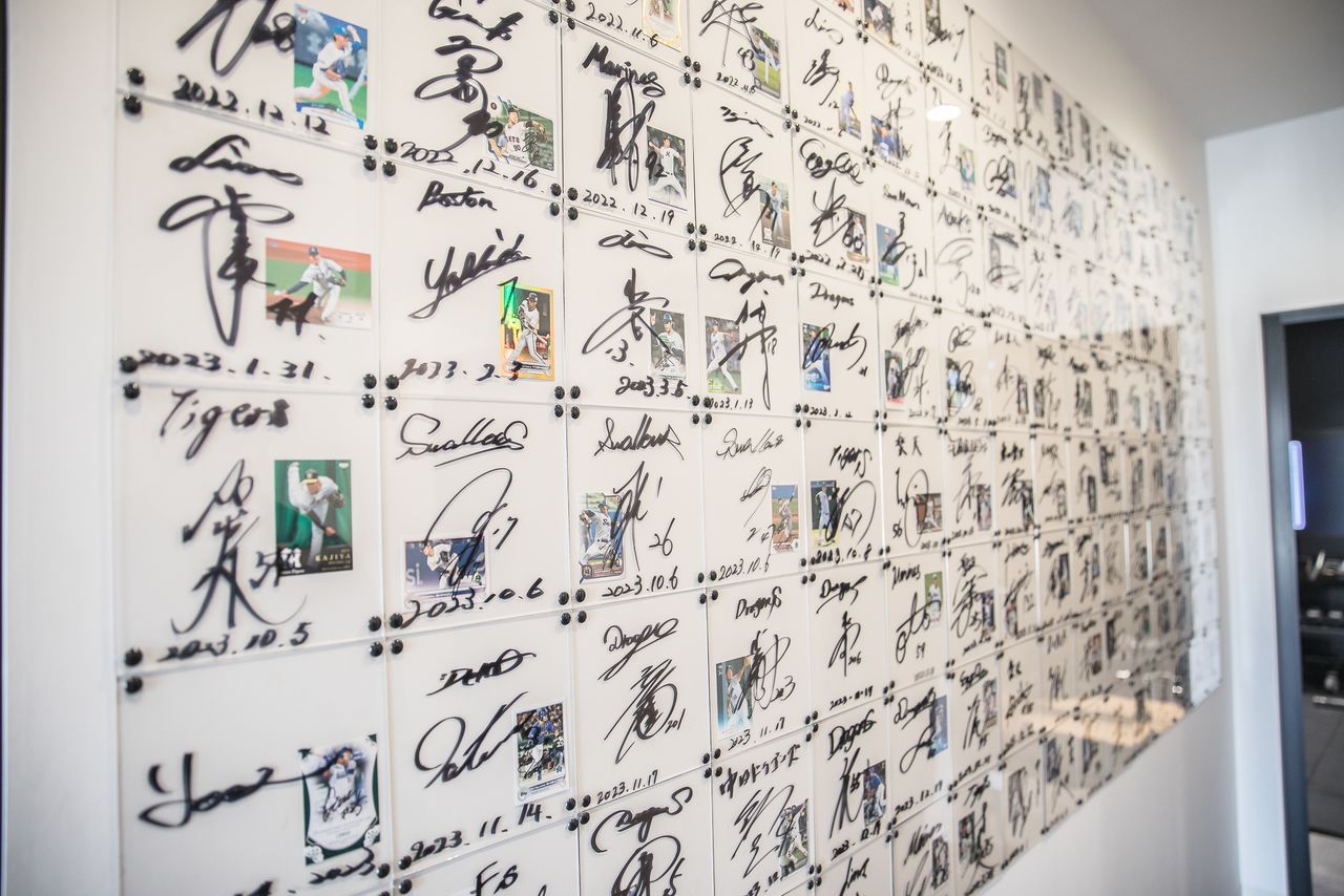 「ネクストベース・アスリートラボ」の壁面を埋め尽くす有名選手のサイン(撮影:松園多聞)