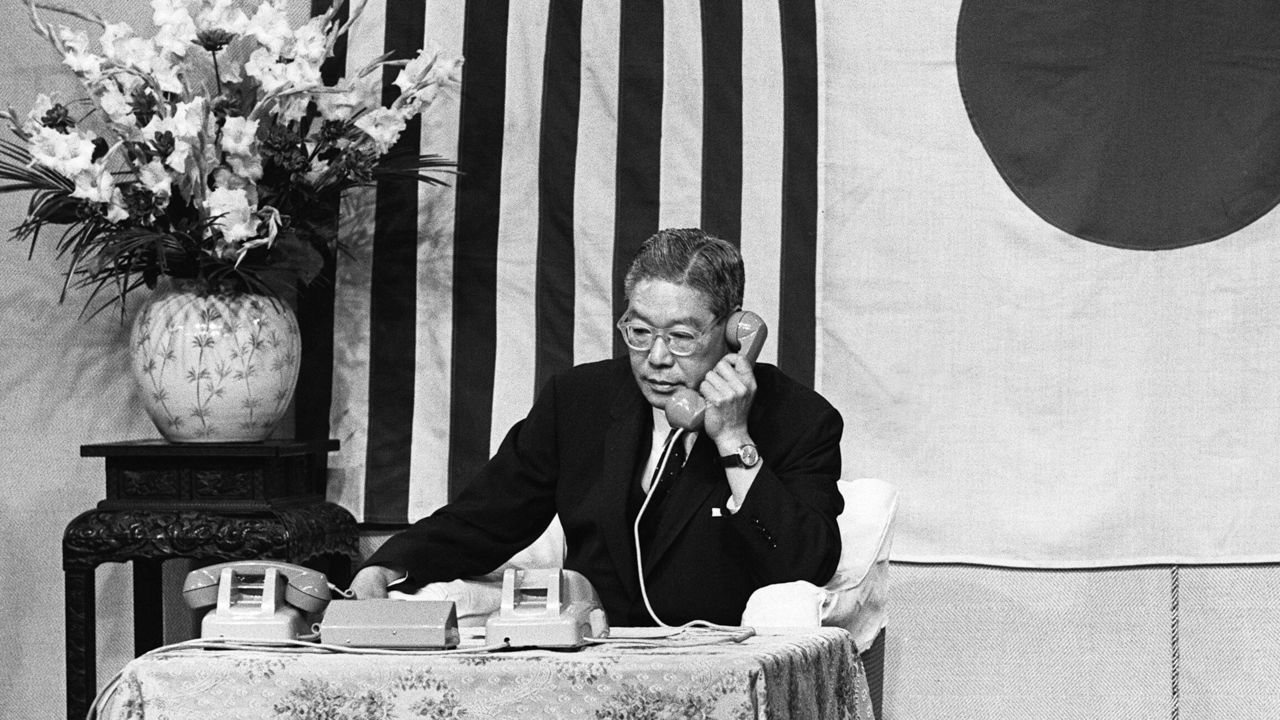 バナー写真:日本とアメリカを結ぶ太平洋横断海底ケーブルが開通し、ジョンソン米大統領に電話する池田勇人首相=1964年6月19日、東京・首相官邸(時事)