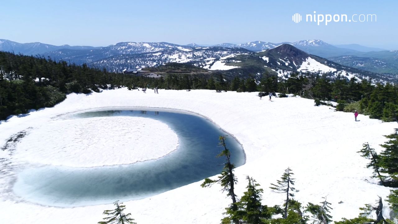 【動画】初夏の八幡平に現れる「ドラゴンアイ」:秋田・岩手県境 JapanIn video 旅と暮らし 環境・自然・生物 社会 2019.06.06 English 日本語 简体字 繁體字 Français Español العربية Русский 秋田・岩手県境付近に広がる八幡平(はちまんたい、標高1613メートル)のなだらかな山頂付近の森には湖沼が点在する。その1つ「鏡沼」(秋田県仙北市)は融雪期、湖面の雪がドーナツ状に解け、まるで竜の目のように見えることから「八幡平ドラゴンアイ」と呼ばれる。5月下旬から6月上旬にかけ見られる大自然の不思議な魅力をドローンで撮影した。 映像:秋田ケーブルテレビ(CNA) 東北 秋田 仙北市 岩手 山 八幡平 CNA 秋田ケーブルテレビ