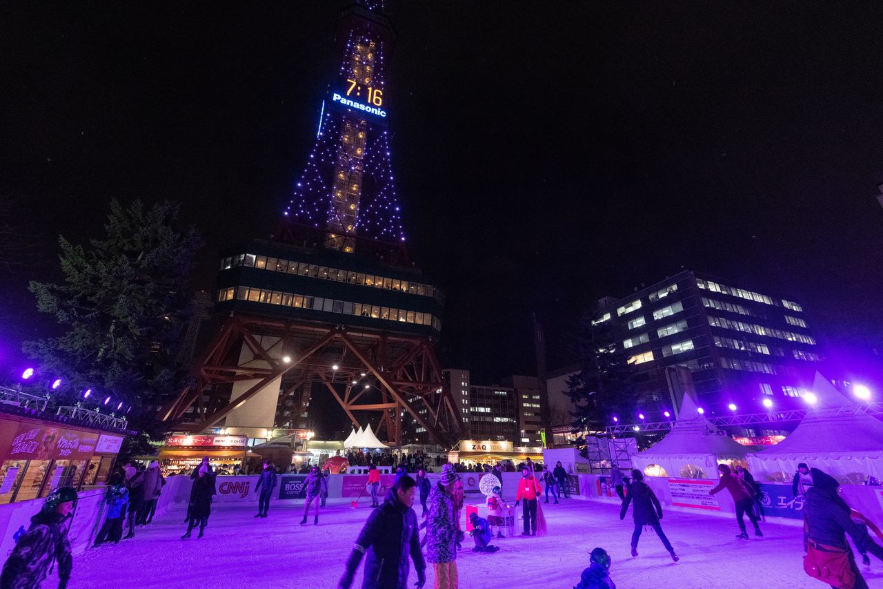 テレビ塔の下に、屋外スケートリンクが出現。家族連れやカップルに大人気で、スケート教室も開催された