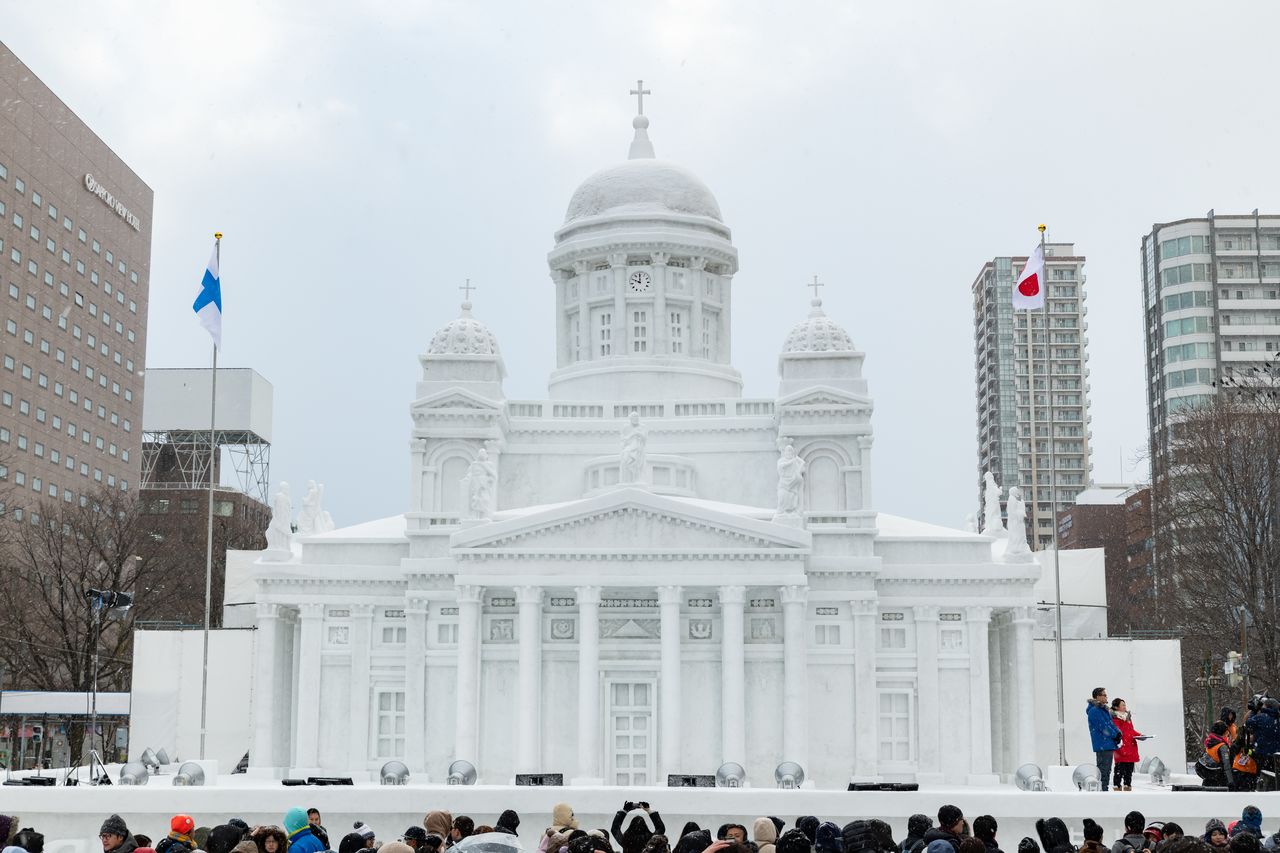 日本とフィンランドの外交関係樹立100周年を記念し、首都ヘルシンキのランドマーク「ヘルシンキ大聖堂」を忠実に再現した 大雪像・ヘルシンキ大聖堂©HBC 北海道放送 2019