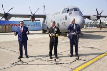 日米、ベトナムに防衛品売り込み ハノイで展示会、中国にらみ Newsfrom Japan 国際・海外 2024.12.19 21:40 / 2024.12.19 21:57 更新 English 日本語 简体字 繁體字 Français Español العربية Русский C130輸送機を背に話す(左から)米国のナッパー駐ベトナム大使、インド太平洋軍のパパロ司令官ら=19日、ハノイ(共同)【ハノイ共同】ベトナムの首都ハノイで19日、国防省が主催して兵器や防衛関連装備品の国際展示会が開かれ...記事全文を読む(外部サイト画面を表示します) 共同通信ニュース 国際