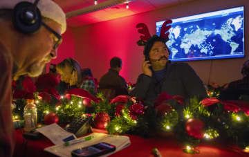 米軍、サンタ追跡「特別作戦」 Xマス恒例、子どもたちに報告 Newsfrom Japan 国際・海外 2024.12.25 09:03 / 2024.12.25 09:04 更新 English 日本語 简体字 繁體字 Français Español العربية Русский 24日、米コロラド州にある北米航空宇宙防衛司令部(NORAD)で、世界各地からの電話に応じるボランティアたち(AP=共同)【ワシントン共同】北米航空宇宙防衛司令部(NORAD)はクリスマスイブの24日、サンタクロースを追跡...記事全文を読む(外部サイト画面を表示します) 共同通信ニュース 国際