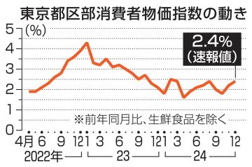 24年東京物価2.1%上昇 食品値上げ、生活負担増 Newsfrom Japan 経済・ビジネス 2024.12.27 10:01 English 日本語 简体字 繁體字 Français Español العربية Русский 東京都区部消費者物価指数の動き総務省が27日発表した生鮮食品を除く東京都区部の消費者物価指数の2024年平均(中旬速報値、20年=...記事全文を読む(外部サイト画面を表示します) 共同通信ニュース 経済