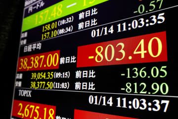 東証、午前終値3万8469円 一時800円安、半導体株に売り Newsfrom Japan 経済・ビジネス 2025.01.14 11:57 / 2025.01.14 12:13 更新 English 日本語 简体字 繁體字 Français Español العربية Русский 下げ幅が一時800円を超えた日経平均株価を示すモニター=14日午前、東京・東新橋連休明け14日午前の東京株式市場の日経平均株価(225種)は大幅続落した。前週末終値からの下落幅は一...記事全文を読む(外部サイト画面を表示します) 共同通信ニュース 経済