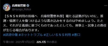 元兵庫県議死亡で県警異例の警告 根拠ないSNS誹謗中傷やめて Newsfrom Japan 社会 2025.01.23 20:28 English 日本語 简体字 繁體字 Français Español العربية Русский 兵庫県警がSNSでの根拠のない誹謗中傷をやめるよう呼びかけるXの投稿兵庫県警がX公式アカウントでSNSでの根拠のない誹謗中傷をやめるよう異例の呼びかけを行っている。斎藤...記事全文を読む(外部サイト画面を表示します) 共同通信ニュース 社会