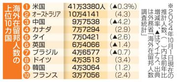 海外在留邦人、中国は3位に後退 22年ぶり、成長鈍化で Newsfrom Japan 経済・ビジネス 2025.01.29 17:06 English 日本語 简体字 繁體字 Français Español العربية Русский 海外在留邦人数の上位10カ国外務省がまとめた「海外在留邦人数調査統計」で、中国に滞在する邦人数は昨年、国・地域別で22年ぶりに3...記事全文を読む(外部サイト画面を表示します) 共同通信ニュース 経済