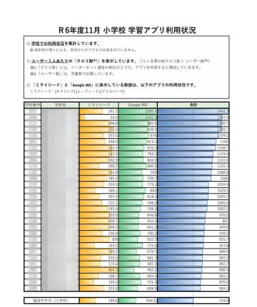 福岡市教育委員会が市内の学校長宛てに配布した学習アプリ利用状況の表(画像の一部を加工しています)