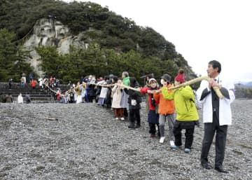 巨岩から大綱引く神事、花窟神社 三重・熊野 Newsfrom Japan 暮らし 2025.02.02 15:43 English 日本語 简体字 繁體字 Français Español العربية Русский 三重県熊野市の花窟神社で営まれた「お綱かけ神事」=2日午前三重県熊野市の世界遺産・花窟神社で2日、春の例大祭があり、高さ約45メートルのご神体の巨岩から垂らし...記事全文を読む(外部サイト画面を表示します) 共同通信ニュース 暮らし
