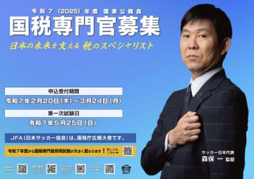 国税庁の募集ポスターに森保監督 税のプロ「専門官に」呼びかけ Newsfrom Japan スポーツ 2025.02.03 09:52 English 日本語 简体字 繁體字 Français Español العربية Русский サッカー男子日本代表の森保一監督を起用した、2025年度の国税専門官募集ポスター(国税庁提供)国税庁の25年度の国税専門官募集ポスターに、サッカー男子代表の森保一監督が起用された。昨年10月に同...記事全文を読む(外部サイト画面を表示します) 共同通信ニュース サッカー スポーツ